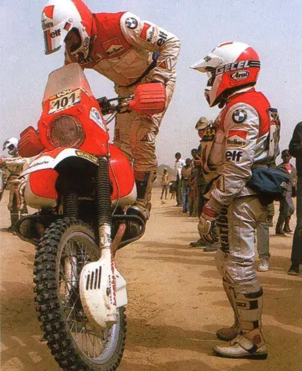 Pero la pareja no había contado con el notable talento y la resistencia sobrehumana del tercer elemento en discordia en toda esta historia: el diminuto piloto de motos Gaston Rahier. Nacido en Bélgica en 1947, debido a que medía sólo 1'64m de altura recibió el cariñoso apodo de Gastounet. Ganó el Campeonato Mundial de Motocross de la FIM tres veces en la clase 125cc, en 1975, 1976 y 1977. Después de esta exitosa racha, terminó segundo en 1978, tercero en 1979, noveno en 1980 y séptimo en 1981. Ante estos malos resultados decidió volcarse en los rallys de largo recorrido. Desgraciadamente en 1982 tuvo un terrible accidente durante una carrera en la que casi se amputó una mano. Sin embargo, a diferencia de lo que le predijeron los médicos, gracias a su inmensa determinación, al año siguiente reanudó su participación en competición, convirtiéndose en una superestrella de la especialidad. Lo hizo en una BMW imponente y difícil de manejar, un hecho que hace que la doble victoria sea aún más impresionante.