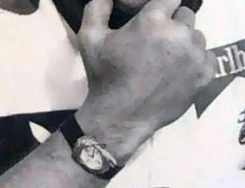 en la única foto que tiene el reloj puesto, y si no equivoco, lo lleva al revés...