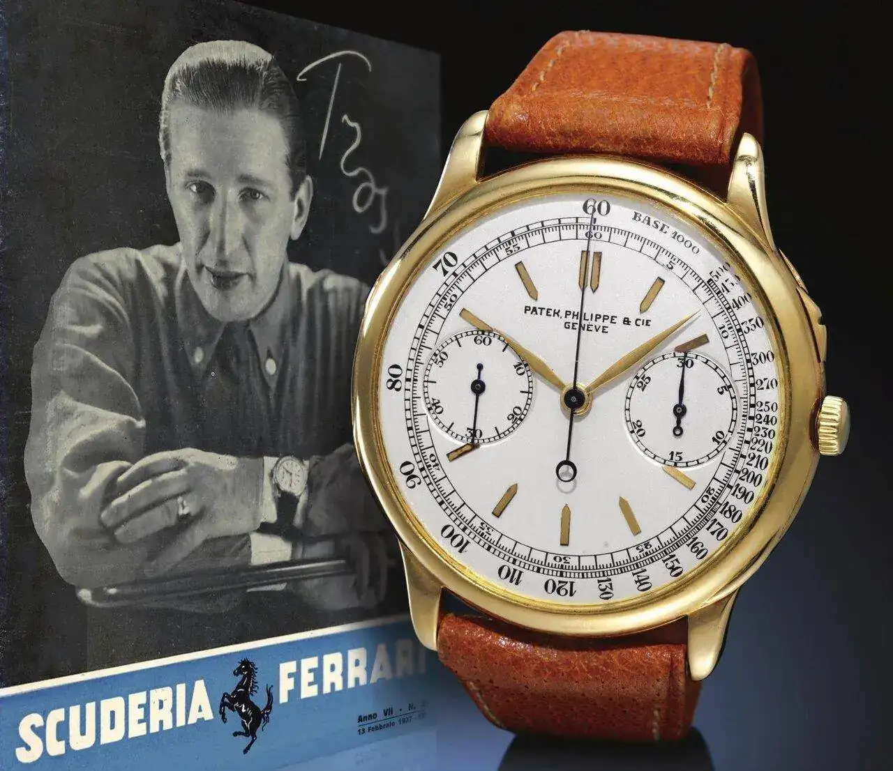 Precisamente en 1932 se vio al Conde a bordo de su Alfa Romeo con un cronógrafo monopulsador de oro, obra de… Patek Philippe. Pero la segunda sorpresa era que ese reloj, que el piloto llevaba siempre por encima de la manga de su mono, tenía un diámetro de… 46 mm!!! Un tamaño extraordinariamente inusual para la época y sobre todo para esa marca.