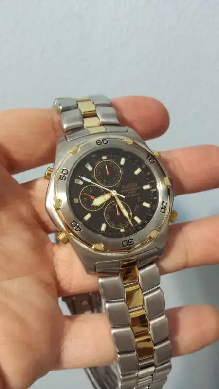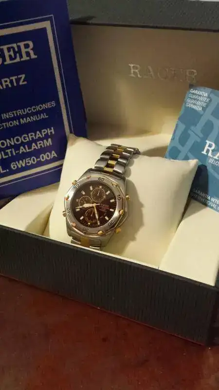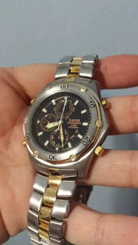 Vendo este reloj con máquina miyota de cuarzo con agujas "bailadoras" capaces de hacer de calendario, alarma, crono cuenta atrás y segundo uso horario.