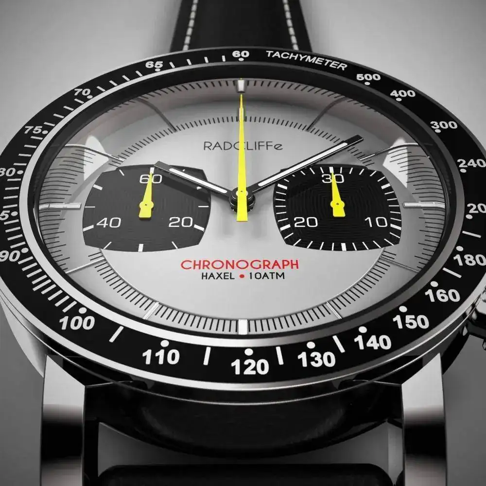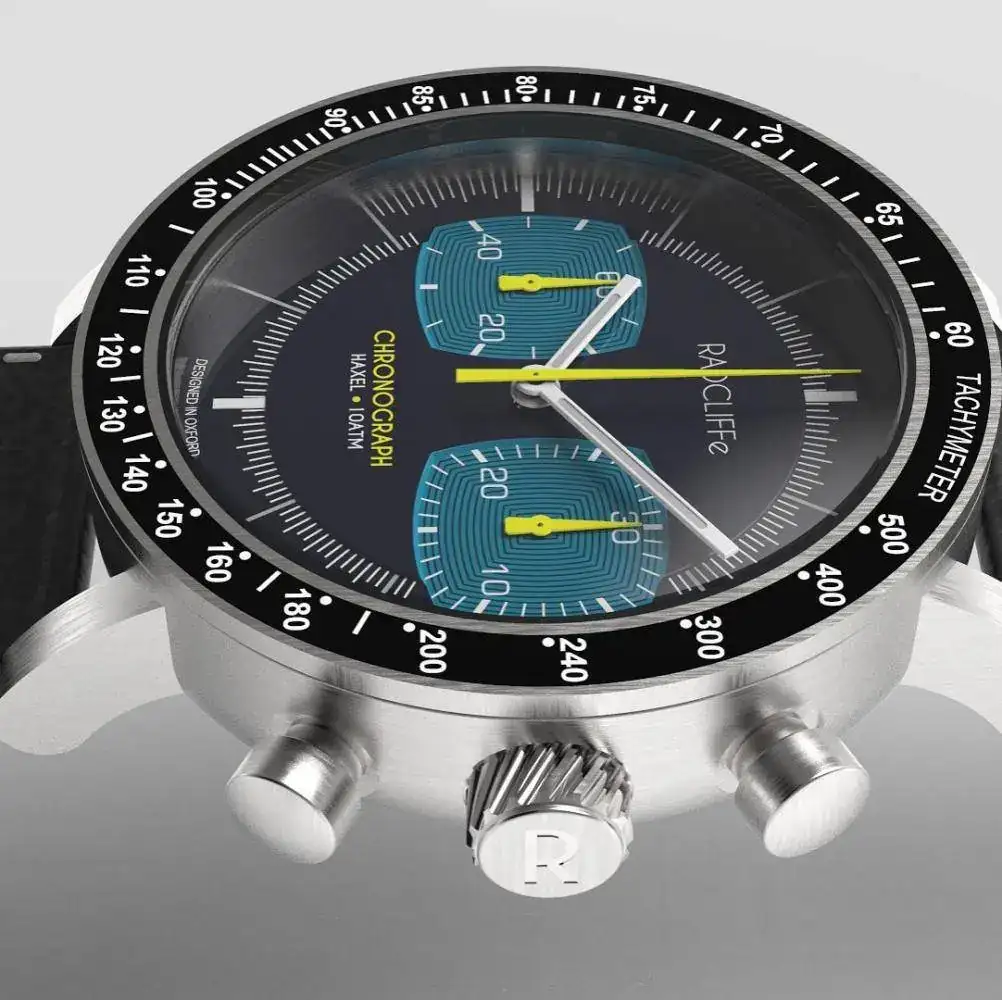 De una nueva empresa, basada en Oxford, Reino Unido, que se llama RADCLIFFe watches (sí, lo escriben así, en mayúsculas salvo la "e" final). Con gran parecido a otro proyecto británico, el Marloe Lomond, este crono, que se llama "Haxel" utiliza un Seagull ST19 y se lanzará en Kickstarter en noviembre 2020. Disponible en varios colores.