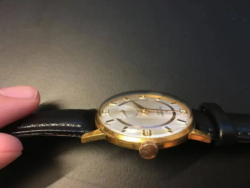 Esfera preciosa con los números y la circunferencia central con baño de oro, cristal de plexi perfecto y en general muy bien cuidado. Lo compré a un coleccionista que tendria unos 100 del estilo hace unos 3 años. Desde entonces lo habré usado 1 o 2 veces. En cambio si lo he dado cuerda y lo he tenido en marcha puesto que me encanta el sonidillo que se oye al tenerlo en la mesita de noche. Lo echaré de menos, pero para tenerlo y no ponérmelo tampoco lo veo.