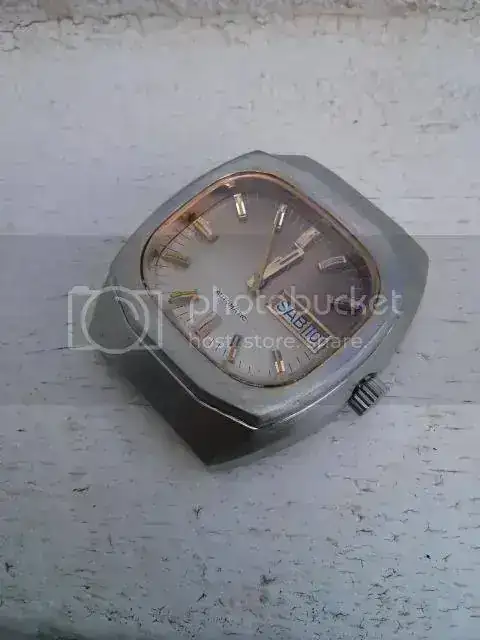 - El reloj funciona. El relojero me ha dicho que su estado es correcto, pero que no le vendria mal un repaso, aceitado y todo esto. El lo ha limpiado un poco, pero al ponerlo en hora y cambiar la fecha se ve que no va fino fino. Me dice que es un repaso sencillo, pero el se retira y no quiere coger mas trabajo.