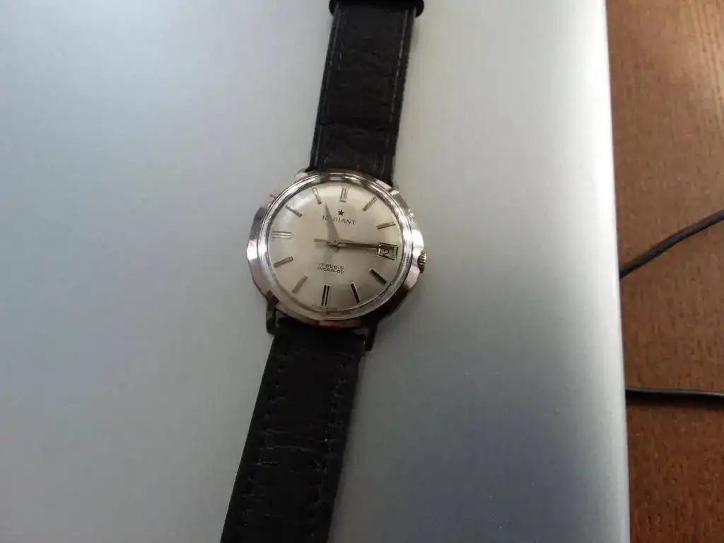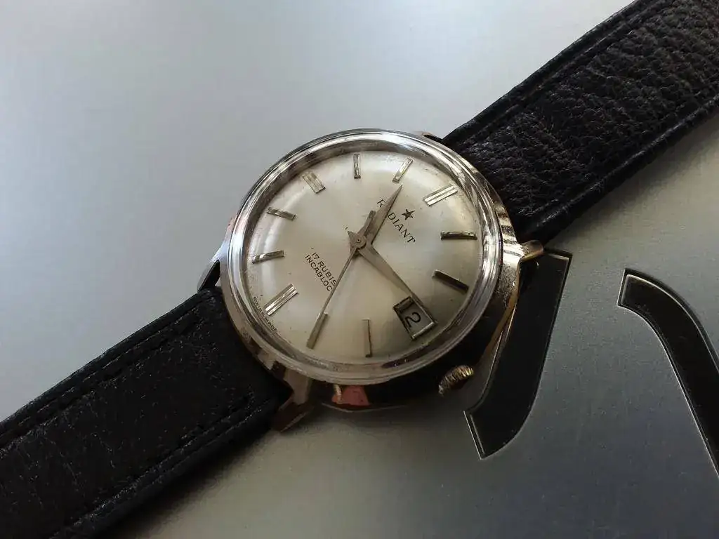 Pongo a la venta un bonito radiant de cuerda manual. En general el estado es bueno, si bien presenta ligeros desgastes en las aristas de la curiosa caja que monta. Si queréis más fotos envío por whatsapp sin problema. No se le ha realizado ninguna revisión desde que lo tengo, así que supongo que le vendría bien una, aunque apenas lo he usado le he dado cuerda y parece que marcha correctamente. Sin más, dejo la ficha y algunas fotos