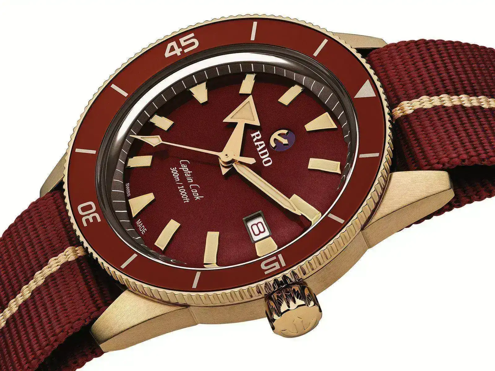 Como tantas otros logros técnicos, el rojo en cerámica ha dejado de ser un mito. Ahora le toca a Rado, el maestro de los materiales y especialmente los cerámicos, dar a conocer su apuesta en ese color (y van unos cuantos estos días). El elegido ha sido el exitoso Captain Cook, que desde su recuperación hace un par de años no pasa temporada en la que no aparezca con un nuevo look.