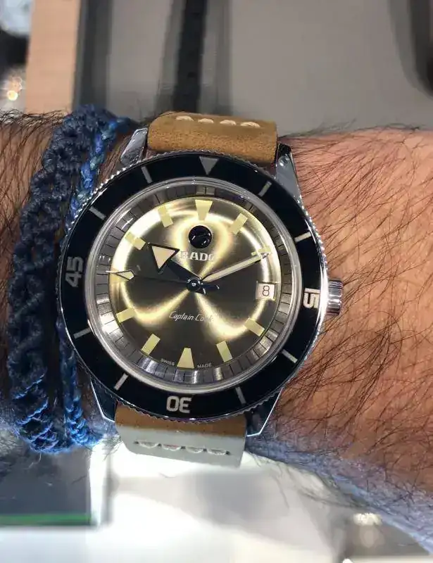 Me probé hace poco el que comentan algunos compañeros de 42 mm , concretamente el verde , y sinceramente me lo vi enorme ( no sé si es por su bisel) pero no me gusto en mi muñeca y no lo compré.