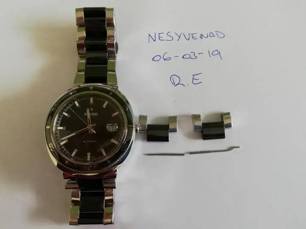 [FONT=Verdana, Tahoma, Helvetica, Arial]No dispongo ni de caja ni de docs. El armis está ajustado para una muñeca de 16.5 cms y cuenta con dos eslabones de sobra. [/FONT]