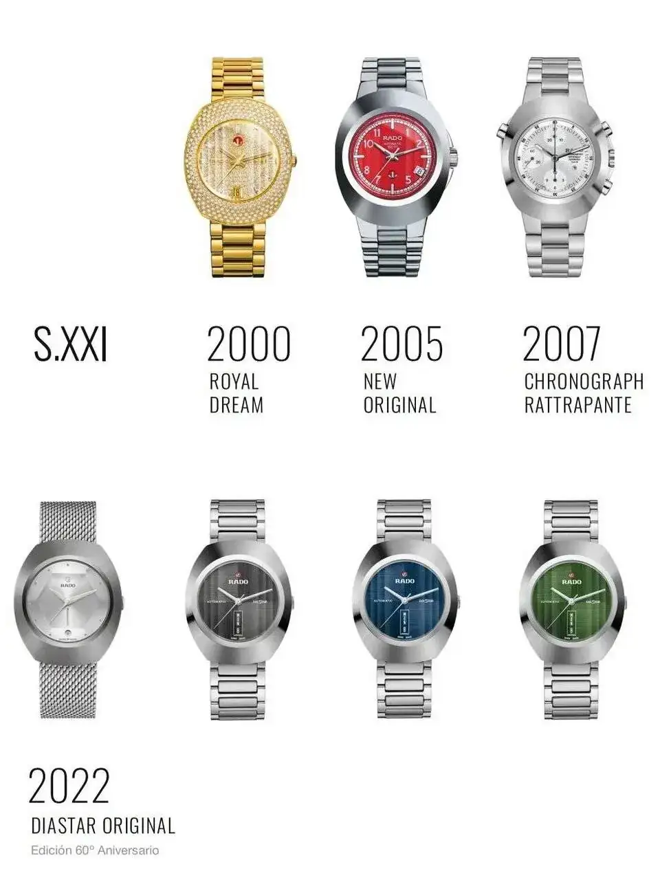 En 2022, Rado celebró el 60 aniversario del DiaStar con nuevos modelos que cambiaban el material de la caja. El carburo de tungsteno original daba paso a la tecnología Ceramos™ desarrollada por la relojera suiza y que parece una evolución del zirconio que se había venido usando durante años: el Ceramos™ "es un innovador material compuesto que combina las propiedades de dureza de la cerámica y el brillo y la resistencia de una aleación metálica".
