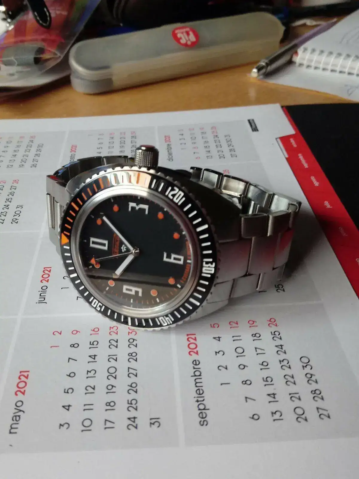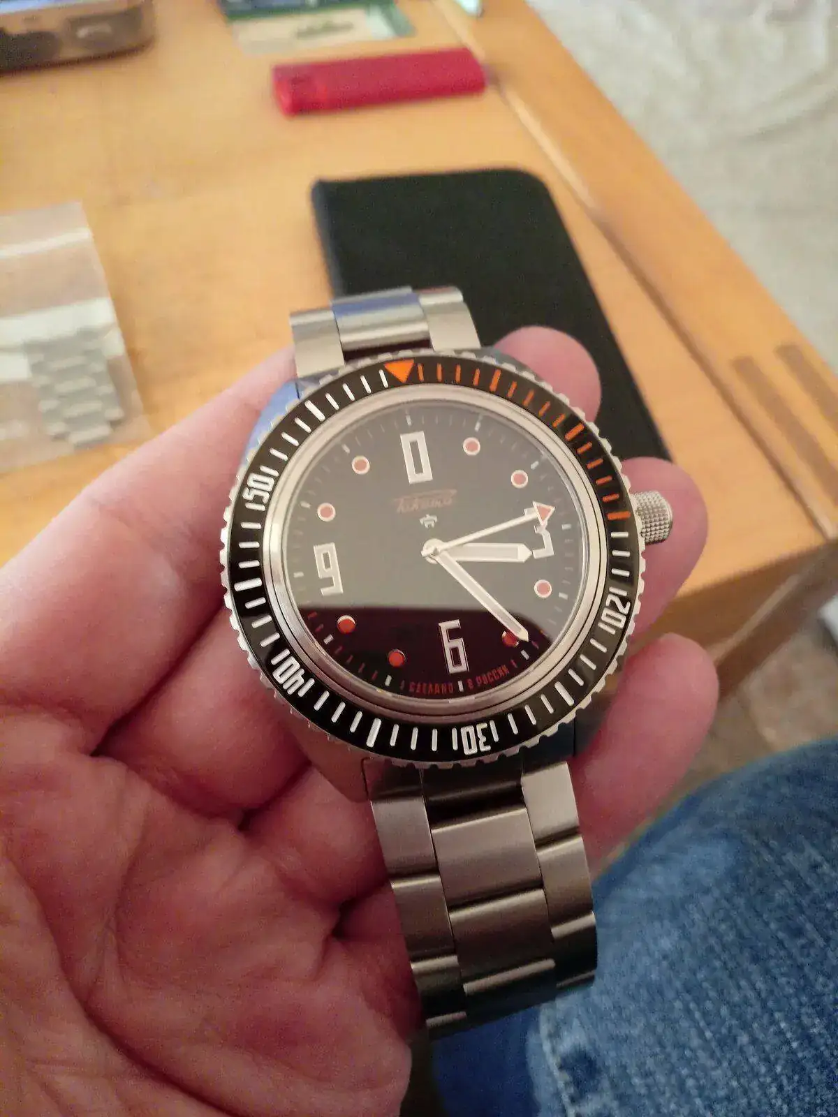 Brutal! Que relojazoBuenas a todos, os quiero presentar el ultimo en llegar, el raketa amphibia acual.Hacia tiempo que me venia rondando la idea de este reloj, pero el precio no era al que estamos acostumbrados en el sotano de rusos. Pero ya sabeis como es esto...ya el domingo pasado me dio el ataque y decidi sacar a la venta los 1967 del 50 aniversario y hacerme con este. Me puse en contacto con algunos amigos y el domingo por la tarde ya los tienia vendidos. El lunes me meti en la pagina y lo compre a traves de trasfarencia bancaria. Al hacer la compra ofrecian la correa de cuero negro brillosa que no me gustaba nada, me puse en contacto con ellos y me dijeron que no habia problema que me mandarian la de caucho que me gustaba mas. El jueves lo recibi, perfectamente embalado, gran presentacion, y bueno estoy contento con el...luche para acortar el brazalete pero al final el jodio me dejo.Por si alguien se anima en el futuro el envio es desde bulgaria, con lo cual no hay tasas ni sorpresas, antes de comprarlo pregunte, ya que no sabia de venia de San Petesburgo o de Paris donde tienen tienda.