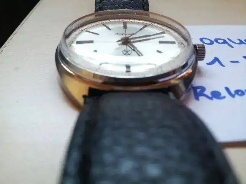 Vendo reloj soviético Raketa calibre manual 2409, en muy buen estado. Atrasa unos pocos segundos diarios. Comprado en 2013, con muy buen estado estético para los años que tiene. Diámetro 39 sin contar corona. Se entrega con correa de piel con bastante vida por delante. Precio 45€, envío incluido.