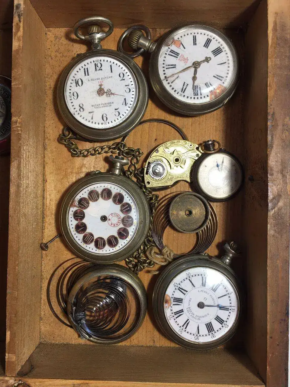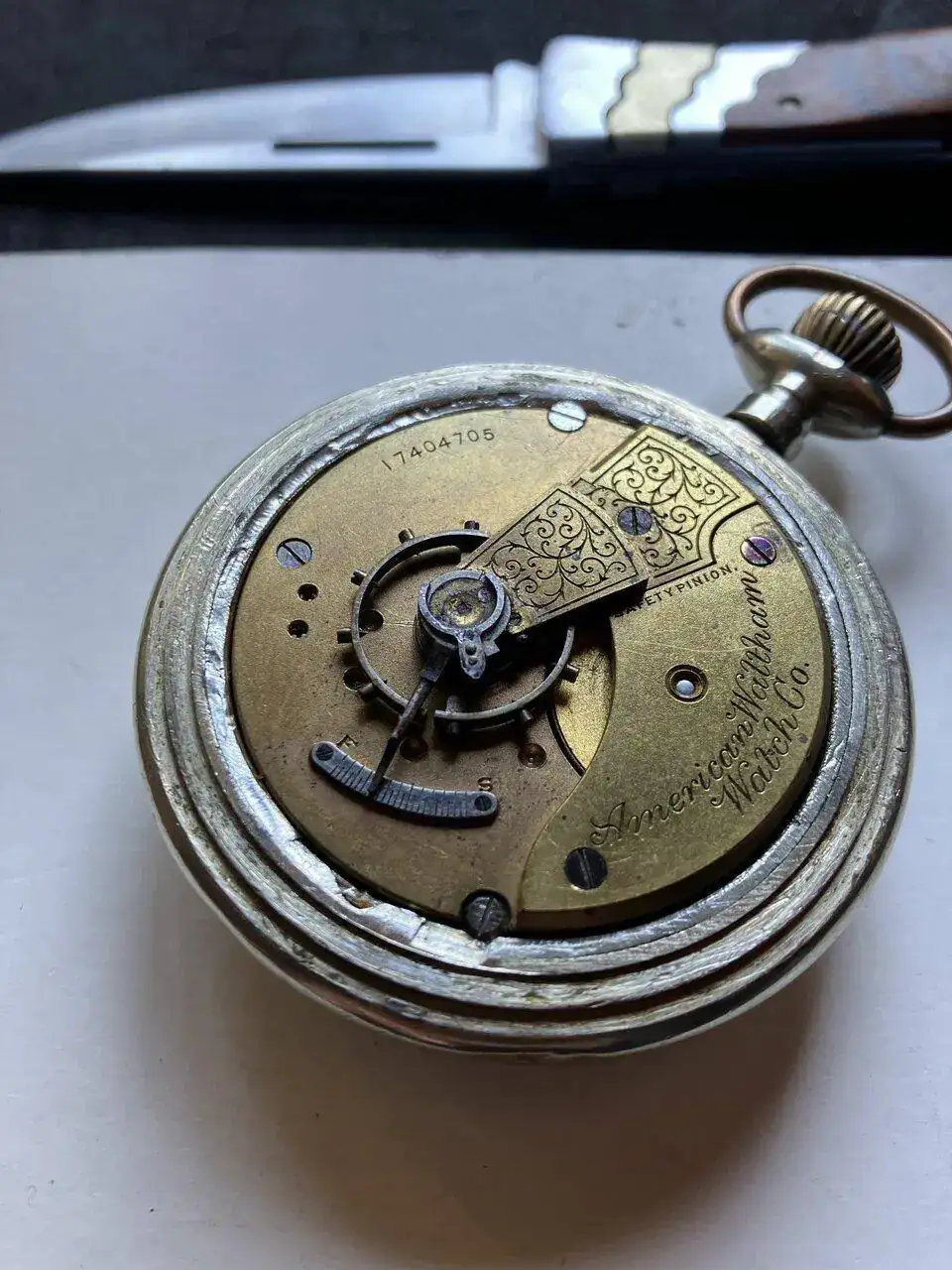 Y entre los de bolsillo, que aún están pendientes de restaurar y datar imagino que este Waltham de 1908: