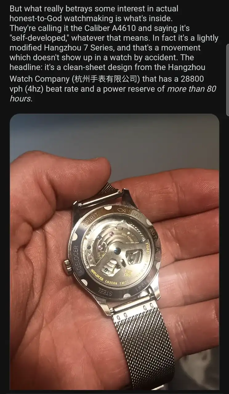 Pues me parece precioso, va muy fino y el movimiento a la vista aparenta ser de mucho más nivel. Ese con el doble puente es más bonito aun.Fijate César que cosas más estúpida. Esa maquinaria es 100% de Seagull, no es clon de nada y va fenomenal. Yo no le veo mucha diferencia con el movimiento 2130 (clon 2428) y sin embargo no se ven muchos relojes con este.
