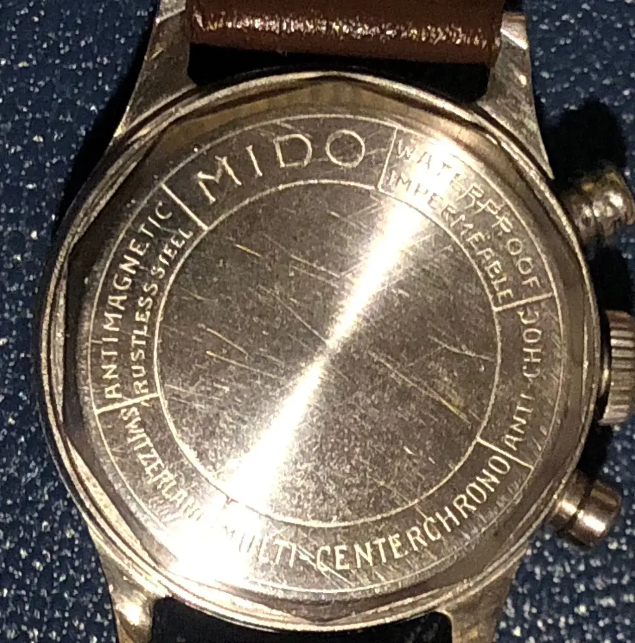 Algo que permite comprobar la autenticidad de la caja como correspondiente al reloj Mido son sus inscripciones en la parte interior de la tapa trasera: