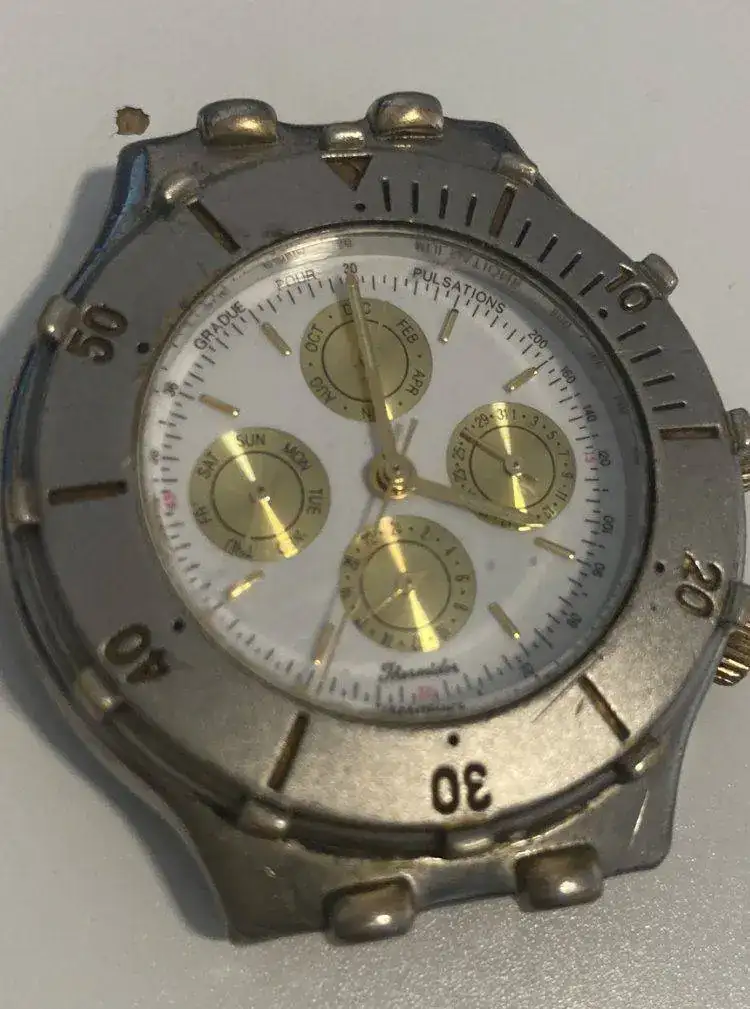 Se trata de un reloj Thermidor, seguramente de escaso valor. Pero me parece curioso que no consigo encontrar nada de nada acerca del su movimiento. Se trata de un Akita 9MF00 (encuentro referencias del 9ME00, pero no de este que al parecer añade la fecha en formato 24 horas).