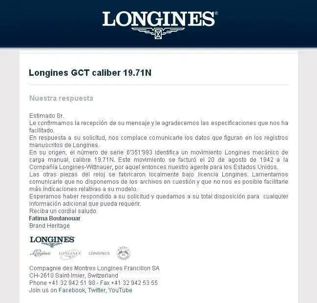 Hace unos días tuve la oportunidad de conseguir este reloj en un magnífico estado precisamente en la marca Longines y con la tapa trasera sin marcar, lo que indica que fue directo de la fábrica a la acción y que muy probablemente se fabricó en 1941. Con sus 21 rubíes, el ajuste de temperatura y las 5 posiciones que tiene, lleva funcionando como si recién saliera de la fábrica.