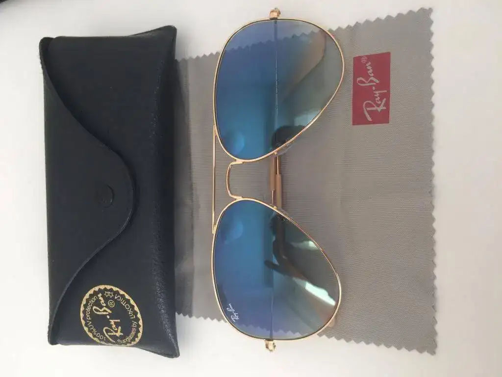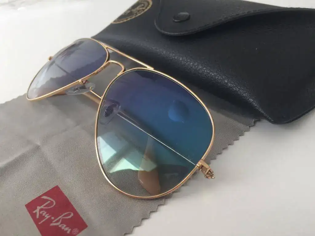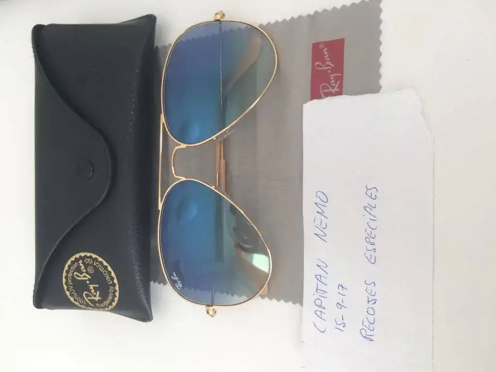 Por acumulación vendo gafas Ray-Ban Aviator originales , montura dorada con cristal degradado azul claro, muy bonitas. Estan nuevas, me las he puesto un solo día. Podeis ver por mis bonus que lo que vendo se ajusta siempre a las descripciones que hago del producto.