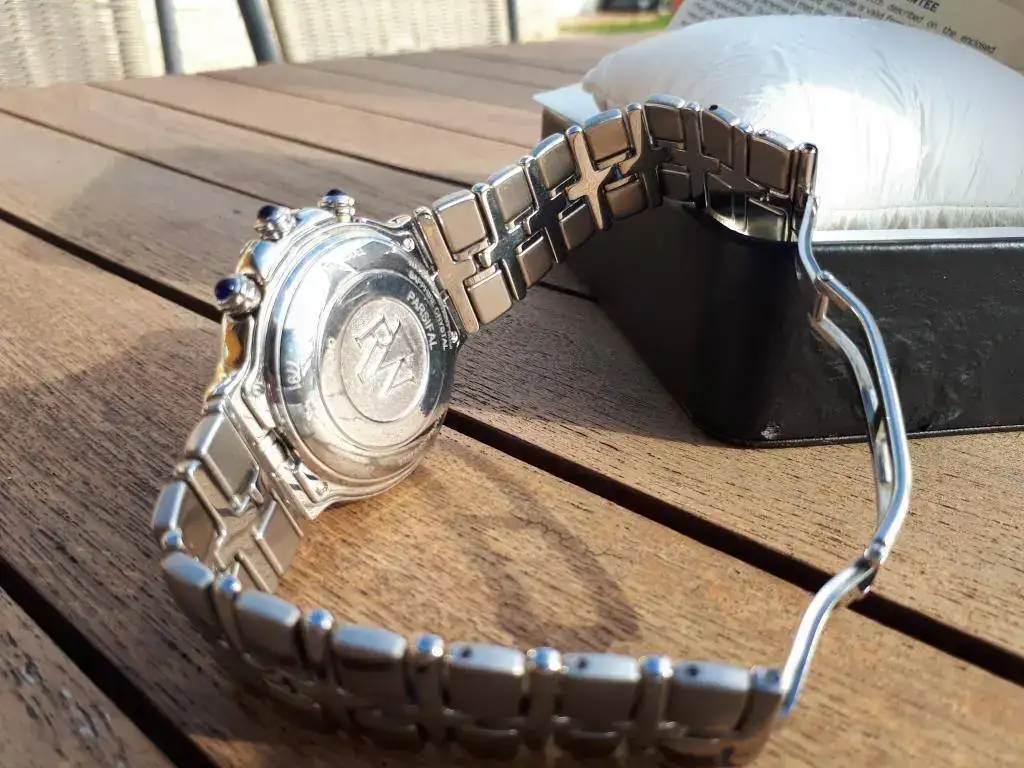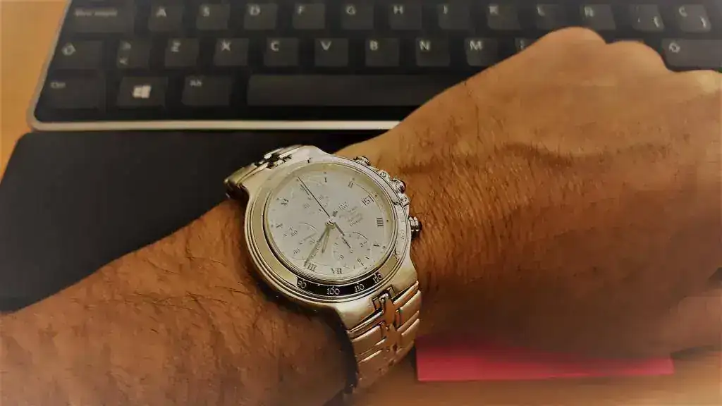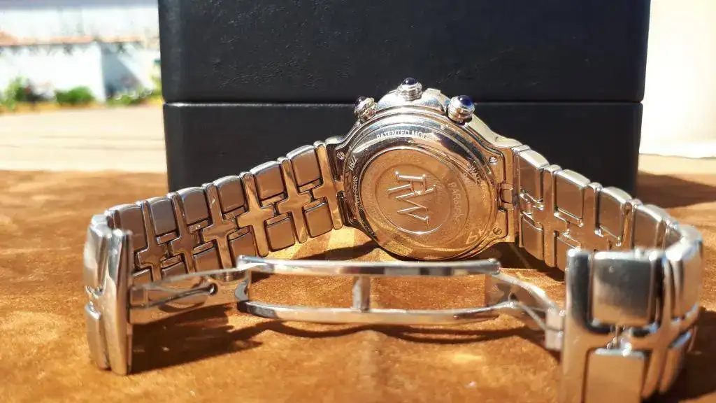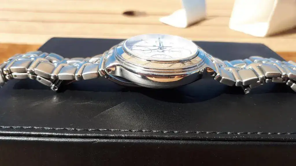 | Brazalete: | Acero, original (en buen estado de conservación 9/10) mi muñecas es de 18... pero con ajustes da hasta 21-22 (eslabones adicionales) |