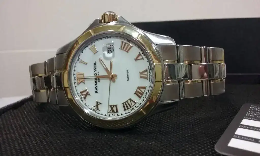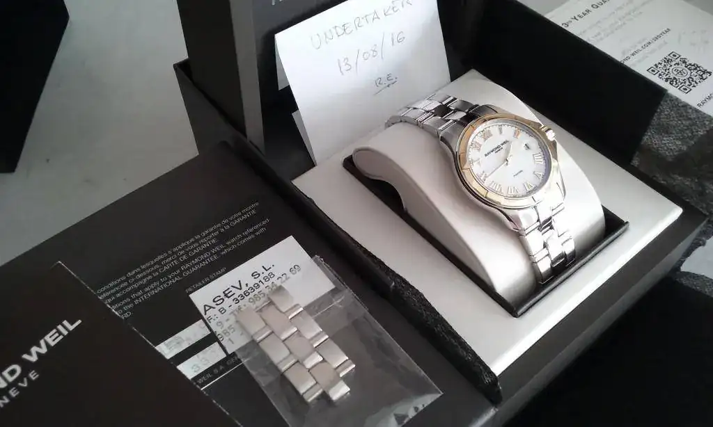 Saco a la venta/cambio este Raymond Weil de acero/oro en estado de reestreno, comprado, ajustado a la muñeca y al estuche de nuevo, sin uso, 100 mts., corona a rosca, tarjeta sellada pendiente de fechar; podría aceptar cambio por reloj que me guste como speedy, Pam, Datejust...ajustando lo pertinente. El pvp era de 2.730 € y lo pongo en 1.600 €