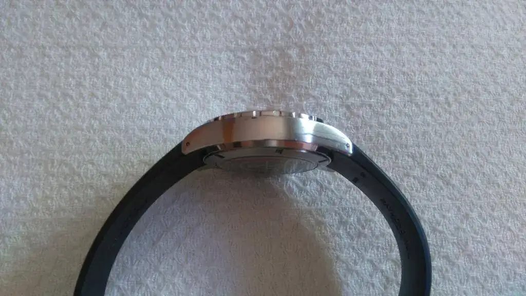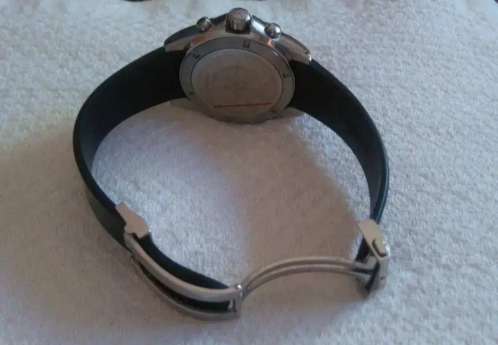 Está muy cuidado, sin golpes ni arañazos, tiene leves marcas en las asas pero casi inapreciables. El cristal es de zafiro y el caucho es el original sin cortar con cierre también original.