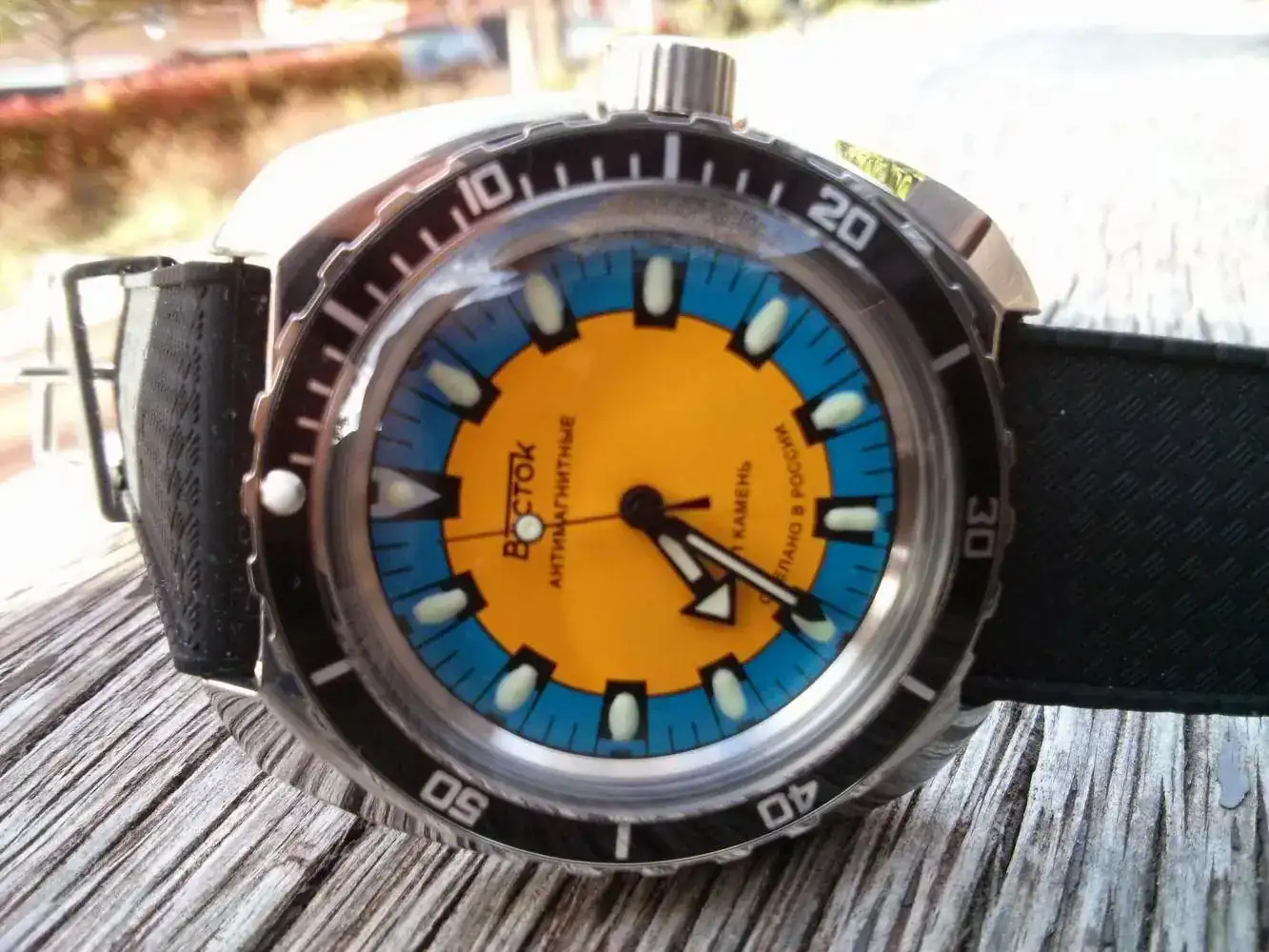 No suelo estar demasiado activo en lo que a postear se refiere pero creo que la ocasión lo merece. Hace unos meses llego a mi retina un reloj muy especial y del que creo que no hacen falta las presentaciones en este foro. Se trata nada mas y nada menos de Vostok RE SE también conocido como "El Banana". Después de que un compañero me lo enseñara se trato de amor a primera vista y pasado un tiempo ha llegado a mi caja para convertirse en un grial de los buenos.