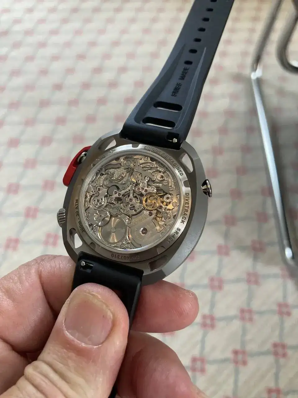 La trasera del Singer la deben usar para el examen final de calibres en las escuelas de relojería. Madredelamorhermoso.Un receso para responder. Ya he estado en Sinn y, si bien no tienen grandes novedades que mostrar, los he visto receptivos a una posible colaboración. Con una producción de menos de 20.000 relojes al año, van un tanto pillados, y dependerá de qué y cuándo se lo propongamos.Eso sí, me hablan de tiradas mínimas que se me antojan imposibles de momento: entre 100 y 200 unidades…