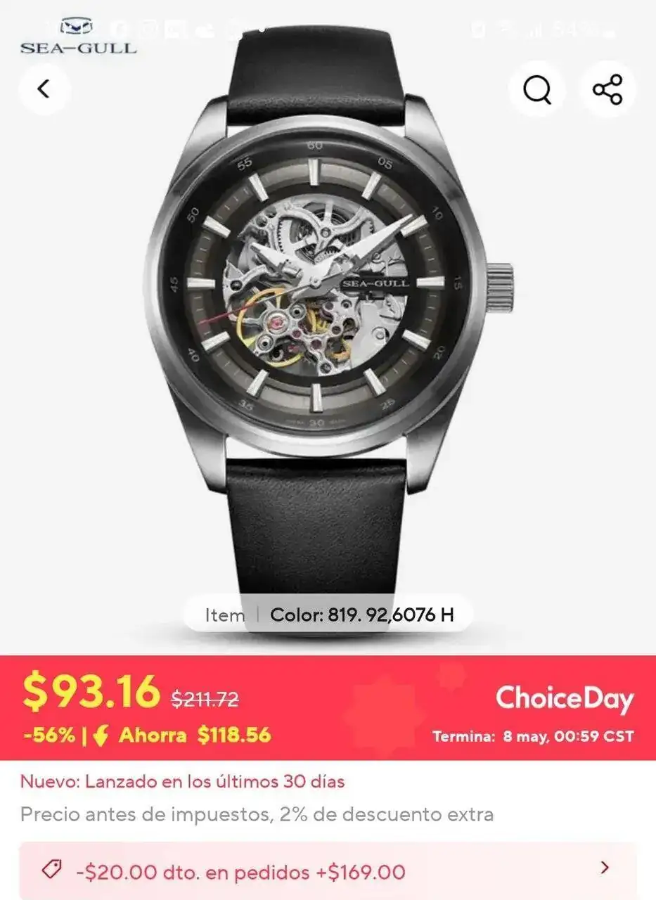 Buen día! Revisando en AliExpress conseguí esta oferta de este reloj esqueleto de Seagull a excelente precio. No soy de los que le llaman la atención este tipo de relojes pero se que hay compañeros del foro que si