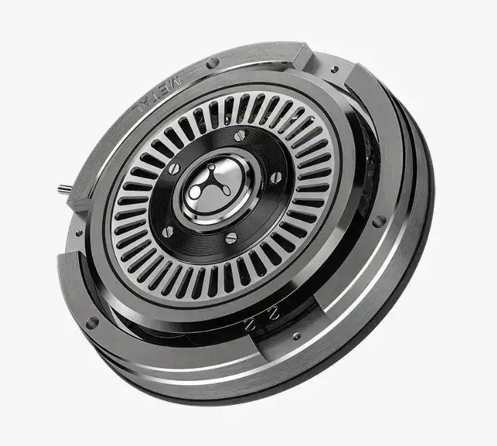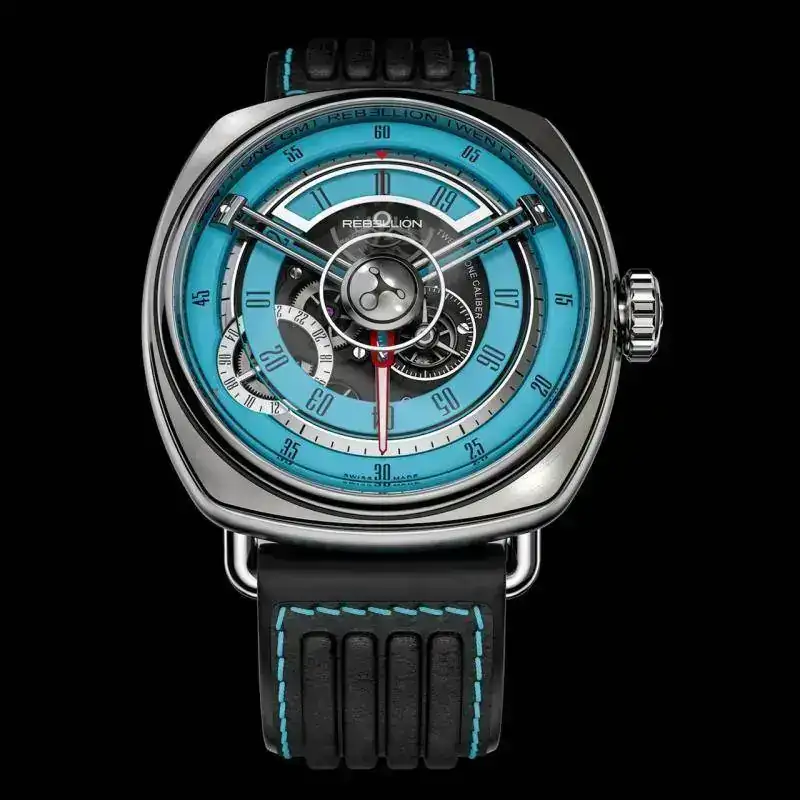 Lo que hace este reloj diferente (aunque sea un poco) es la ausencia de las agujas minutera y horaria, de cuyas indicaciones se encargan dos discos móviles bajo indicadores fijos