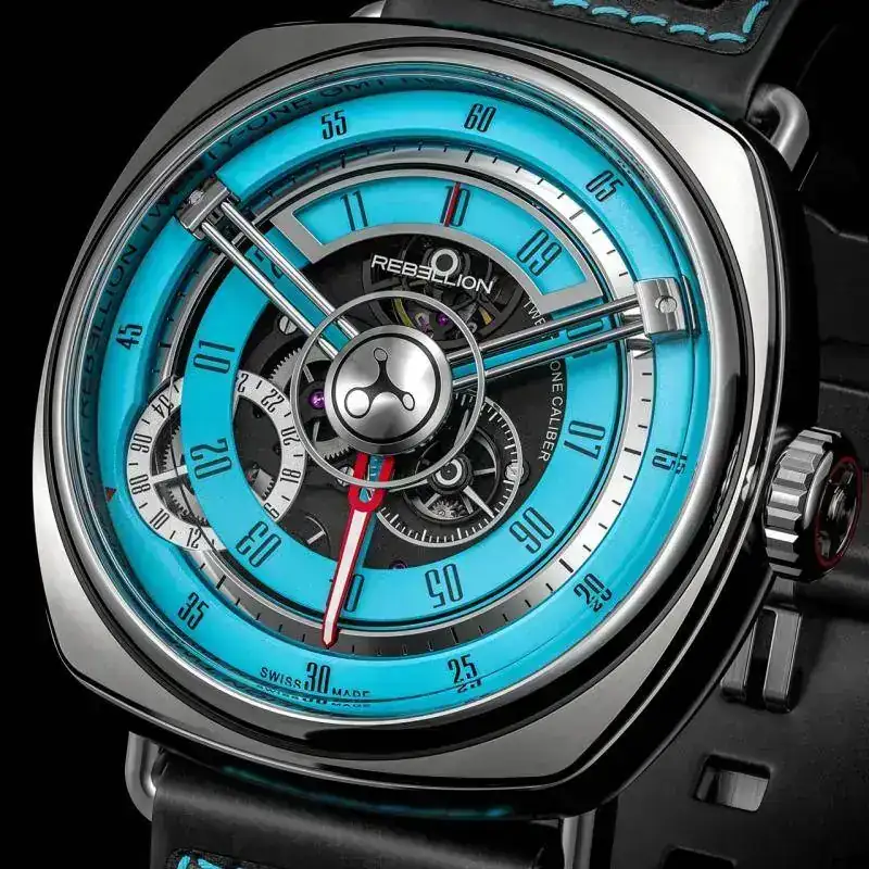 Correa y hebilla: Correa de piel con base de caucho, intercambiable. Negra con pespunte turquesa