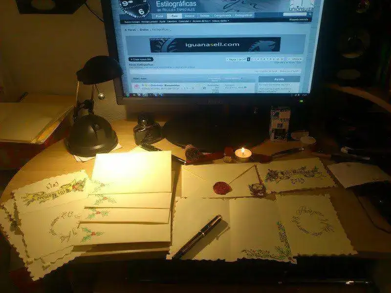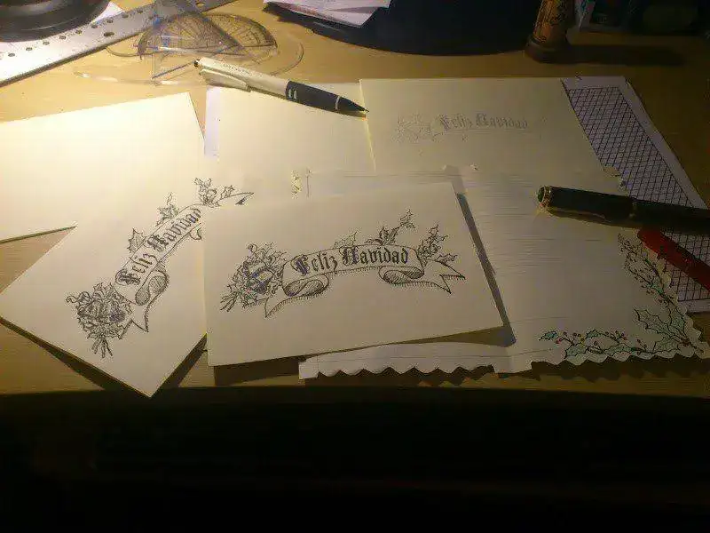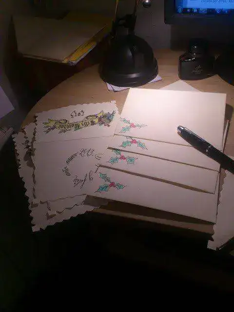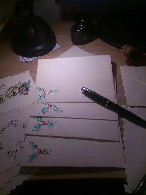 Les Christmas à l'encre Paker Quink à la maison. (Postales navideñas caseras en su tinta Paker Quink).