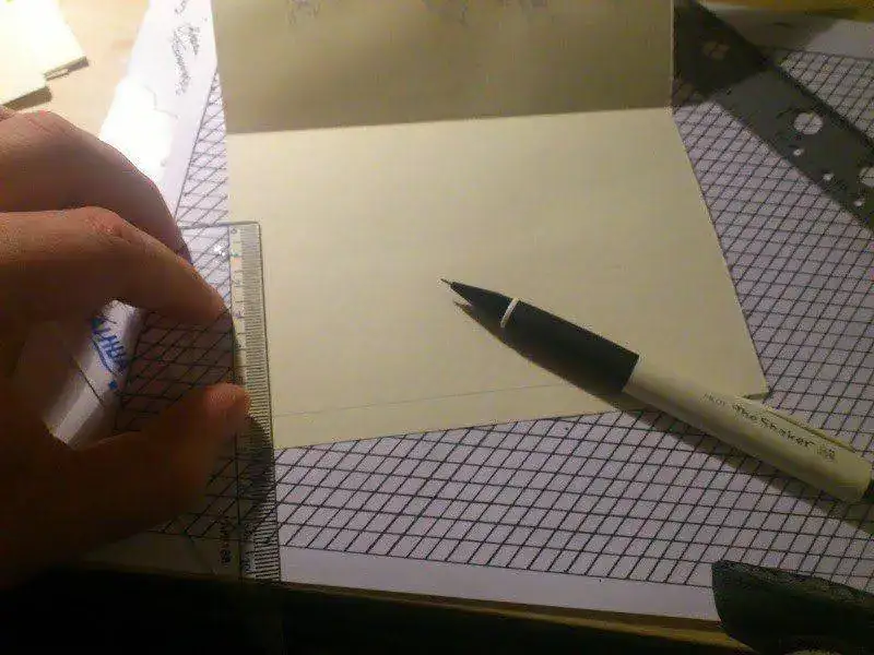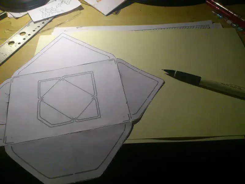En una mesa limpia cogemos los folios Y transportamos el template del sobre, y procedemos a recortar la forma.