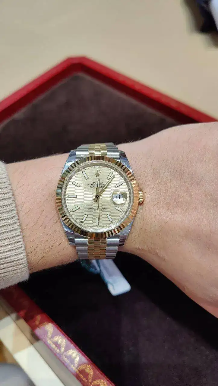 Hace un par de meses me ofrecieron en la boutique oficial de Rolex de mi ciudad Un Datejust bitono con oro amarillo en 41mm. Por obvias razones lo rechace por el precio elevado, pero siempre quise tener un rolex y que me lo ofreciesen siendo un cliente novel, me sorprendio gratamente ya que no suele haber nunca stock y menos de hombre. Creeis que hice bien o mal? me quede con un poco mal sabor de boca al saber que a la hora se lo habian llevado🫨