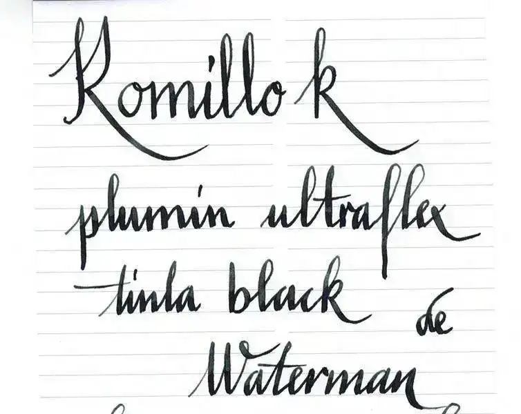 Escribir caligrafía de anchura variable implica dos factores (entre muchos otros menos evidentes). Uno que el plumín sea flexible en mayor o menor medida. Otro, modular la presión al escribir de manera acorde con el trazo que requiera la letra. Ambas cosas son completamente diferentes y casi opuestas al modo de escribir de la mayoría de las personas en la actualidad (hay cada aberración al sujetar un lápiz que no me extraña que cada vez se usen menos plumas). Digo esto por la gente que puede pensar que si se compran un buen plumín flexible van a obtener de forma automática una caligrafía cooperplate o inglesa preciosa. No es así, y lo digo por propia experiencia.