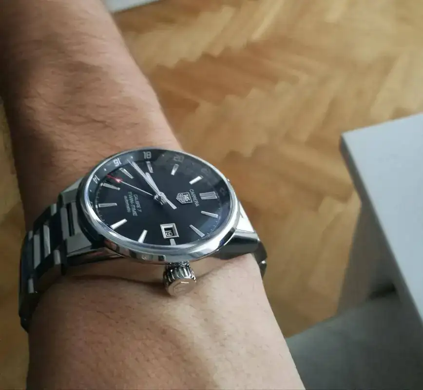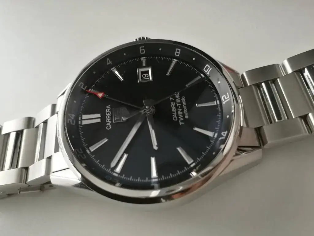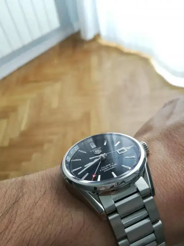 Finalmente por 300 razones extraidas de esos hilos el elegido fue el Tag Heuer Carrera Calibre 7 Twin-Time dial negro con textura como "irradiada". En el catálogo usan un nombre mucho más chic para esta textura, pero yo soy de pueblo.