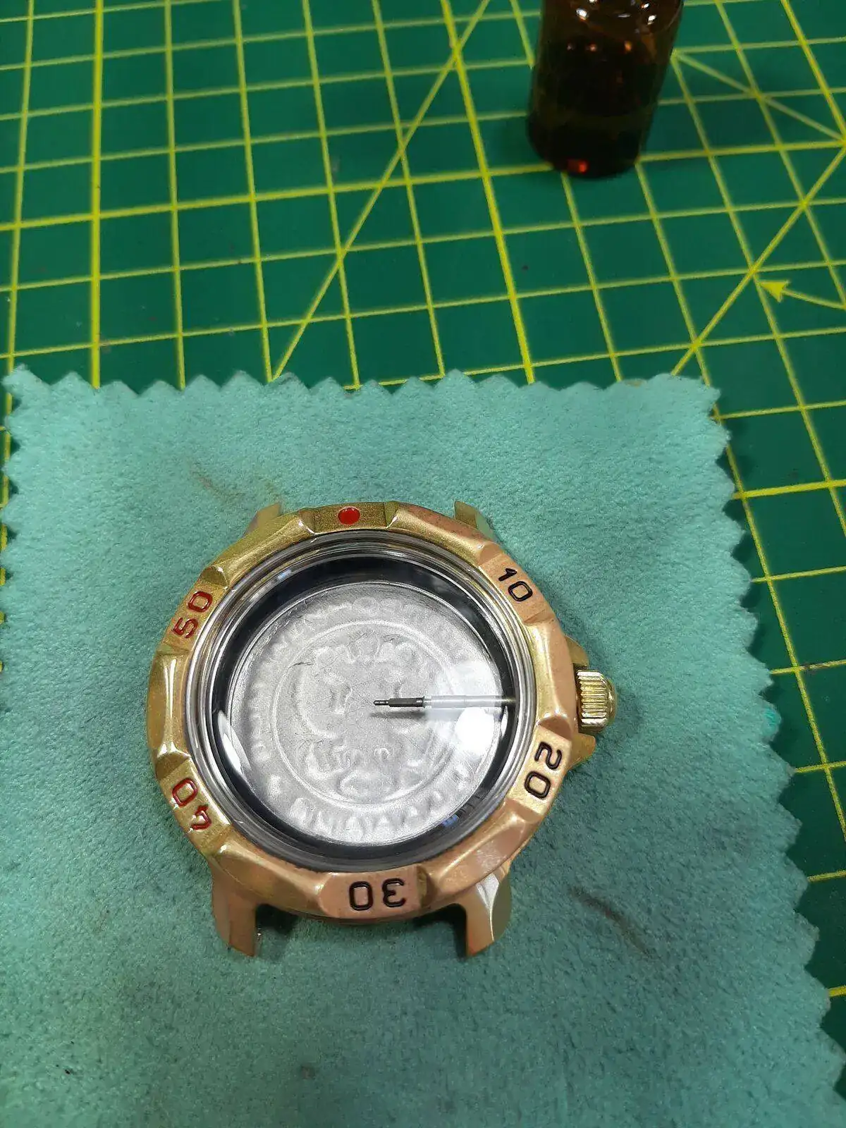 pero como no tengo fotos decentes, no abro hilo para mostrarlo 😢 un . No obstante, confirmar, un tupper de plástico o bote de cristal con tapa sirven. Yo he usado un bote de cristal de base anchita para que me cupieran separados la caja y el bisel. Y tapado para evitar olores. Después aclarado con agua. Y ahora en proceso de "patinizacion" en un tupper con vinagre y un poco de sal, a ver qué sale.Para la patina, yo he usado con buenos resultados el amoniaco, pero deben ser los vapores, en un tuper he puesto una pequeña cantidad de amoniaco (he usado una tapa de plastico de una botella de leche) y luego he metido el reloj y he cerrado perfectamente y en unos 10-20 minutos el metal ha cogido una patina como si hubiera estado a la intemperie varios años.Ya he hecho mi primer brasseadopero como no tengo fotos decentes, no abro hilo para mostrarlo 😢 un . No obstante, confirmar, un tupper de plástico o bote de cristal con tapa sirven. Yo he usado un bote de cristal de base anchita para que me cupieran separados la caja y el bisel. Y tapado para evitar olores. Después aclarado con agua. Y ahora en proceso de "patinizacion" en un tupper con vinagre y un poco de sal, a ver qué sale.