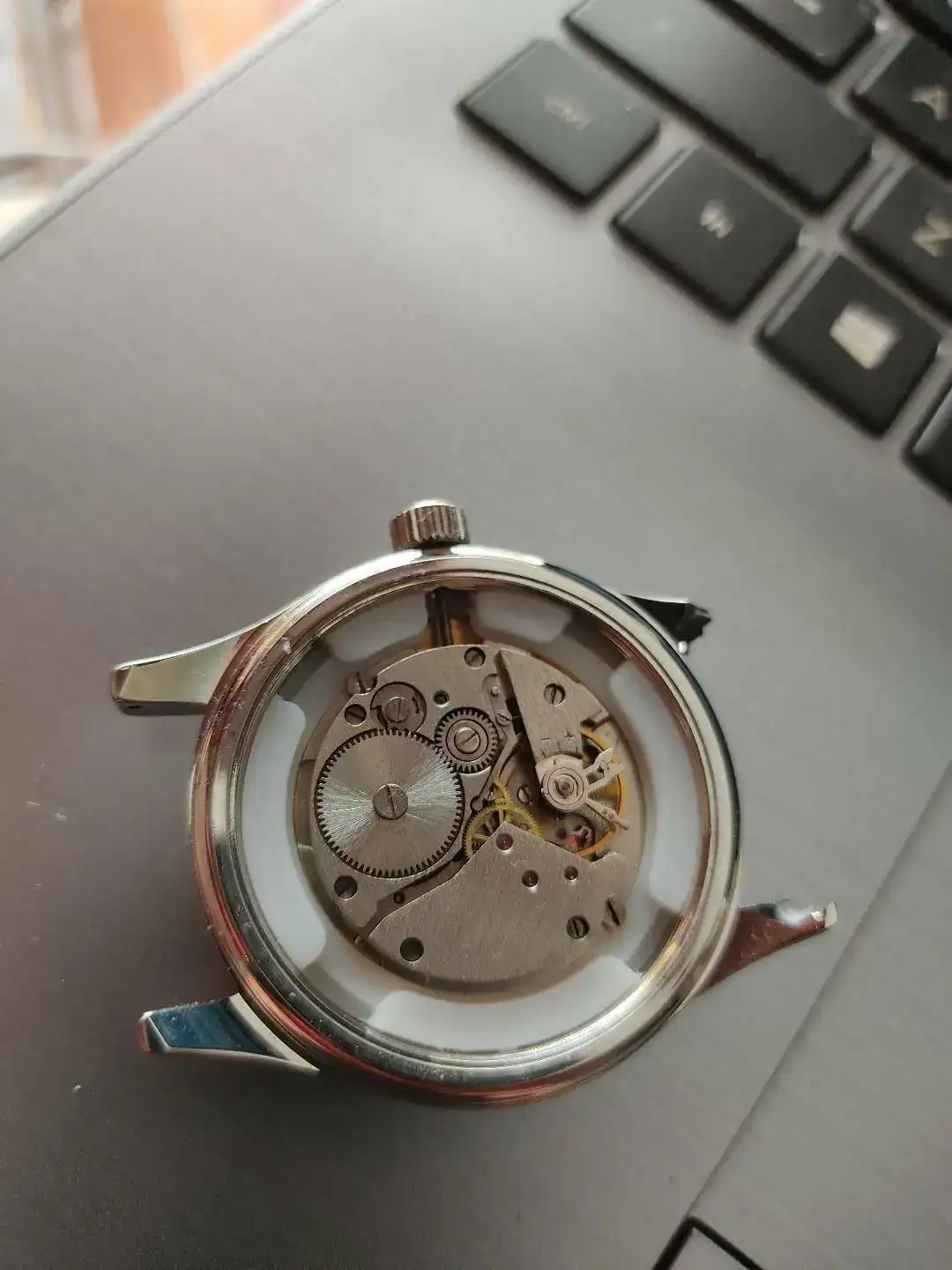 Este es el reloj antes del procedimiento, con un bisel de acero, pero se aprecia el color natural del laton en la caja. (una disculpa, es que soy un "agonioso" y un prisas )
