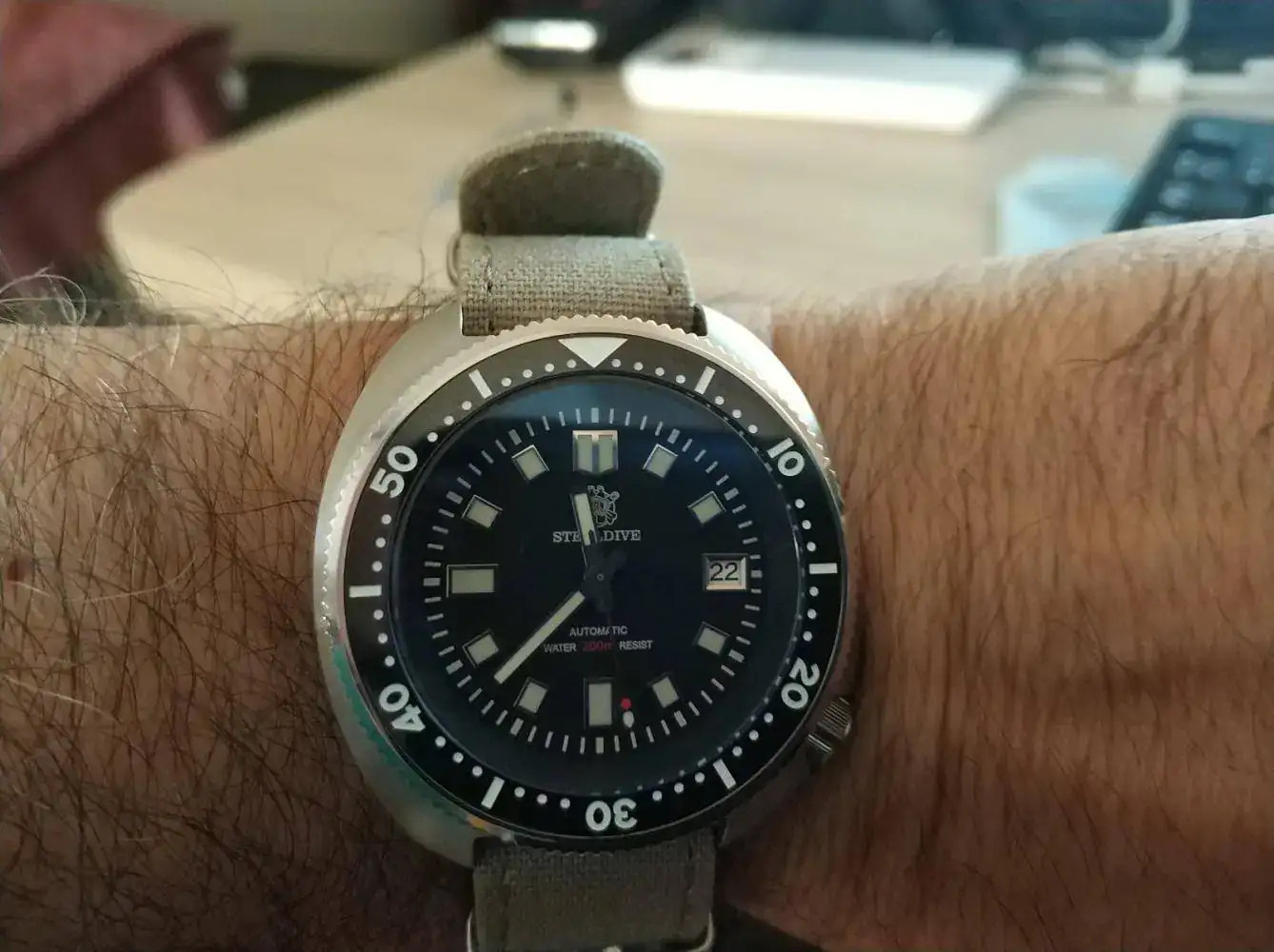 Tambien hay otros como este diver tortuga que estan ofreciendo precios mas bajos que el sanmartin por ejemplo este steeldive NH35 bisel cerámico, cristal de zafiro y acero 316L