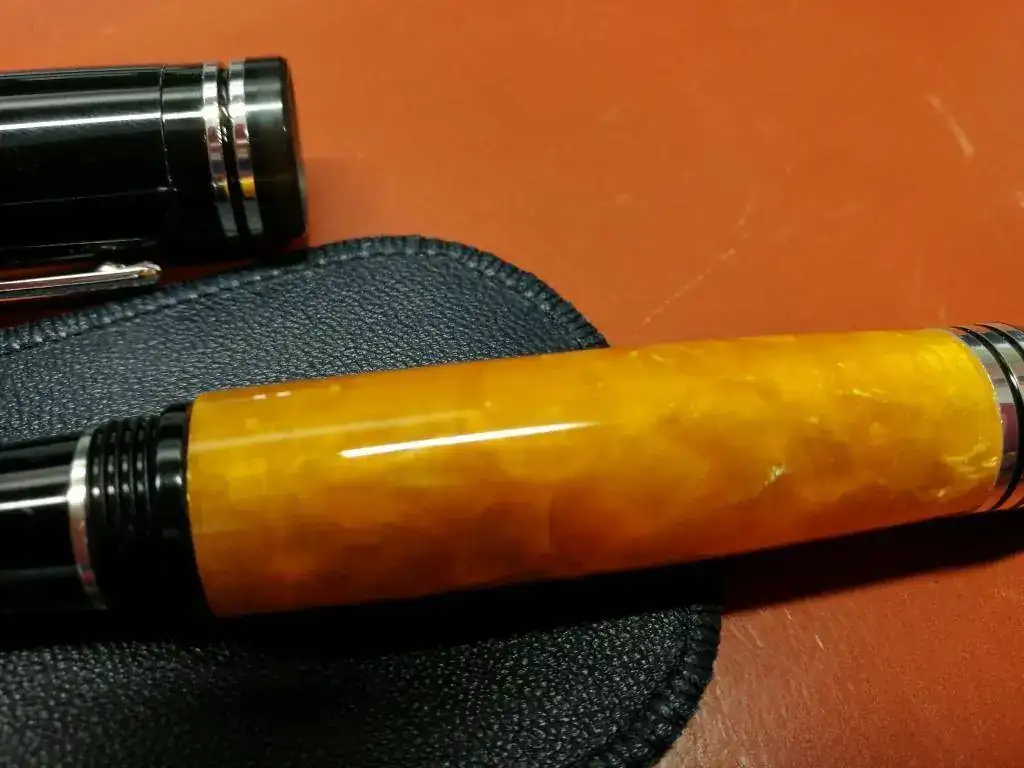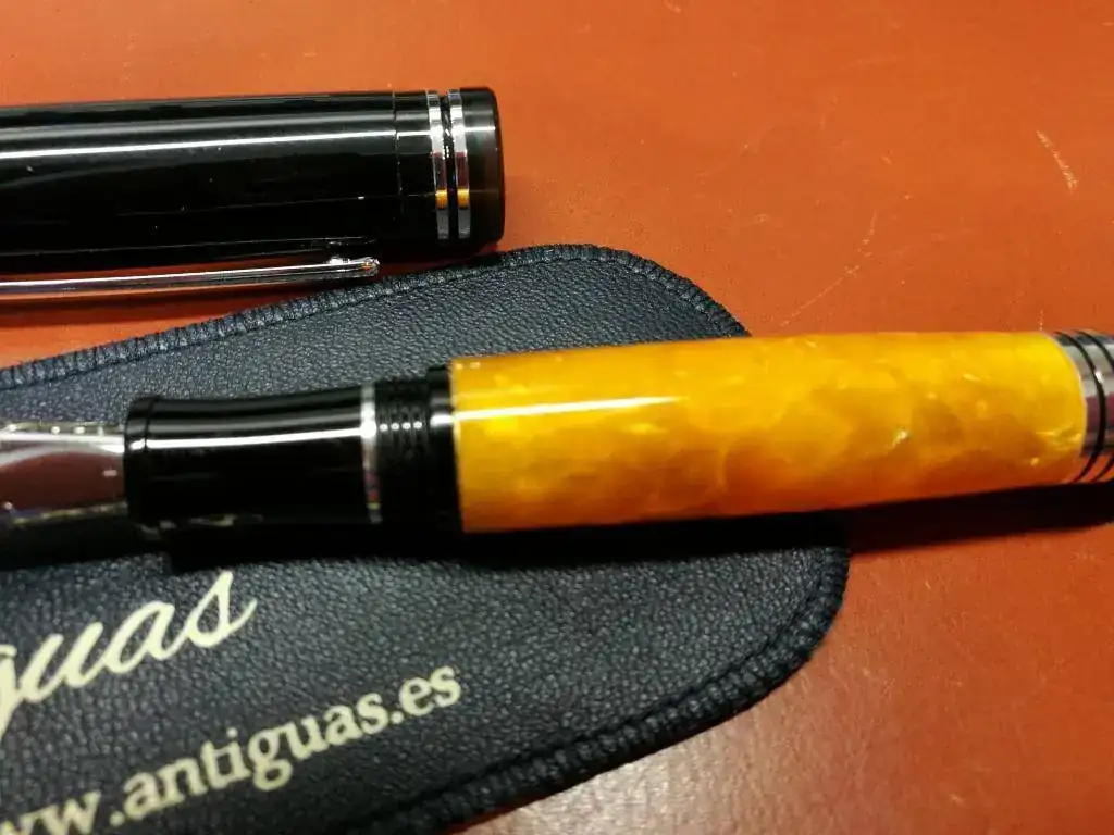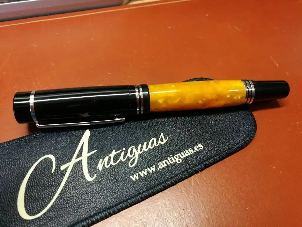 Hola, tras conocer la marca a través del foro pedí una estilografica modelo Egeo, plumin JoWo de acero F, en resina crush amarillo/negro y hoy me ha llegado.