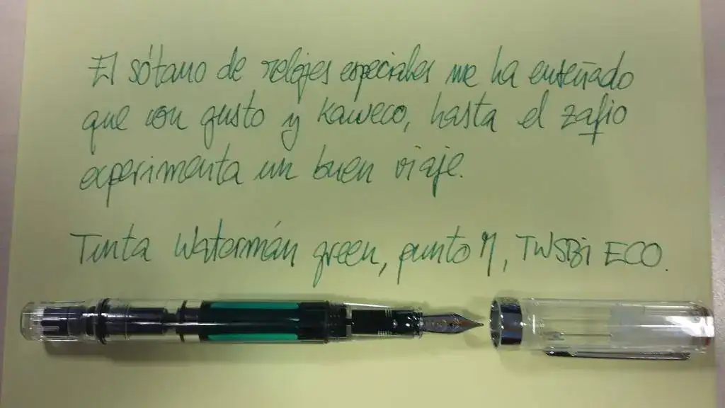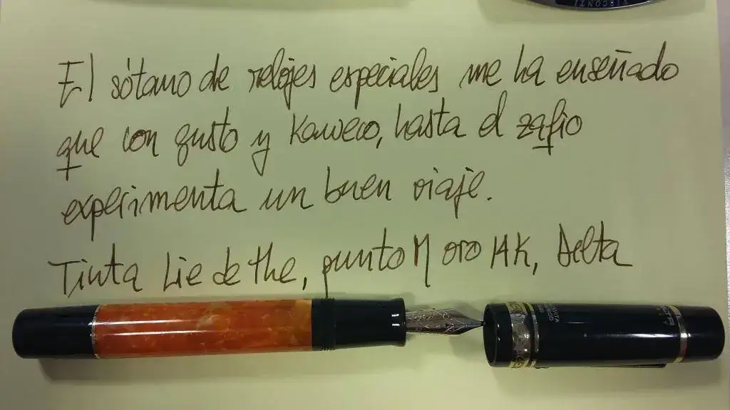 Como comentario, con este papel tan seco y las tintas que hay cargadas, la más agradable es la Delta con plumín de oro, seguida por la Twsbi y por último la Visconti, aunque, esos sí, a muy poco distancia. Y creo que la Lie de The es sensiblemente más fluida, por lo que en un papel tan seco es probablemente mucho más apropiada.