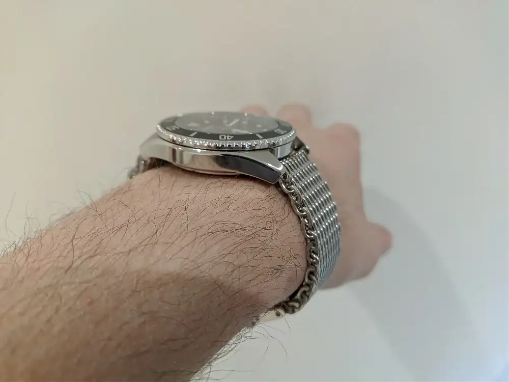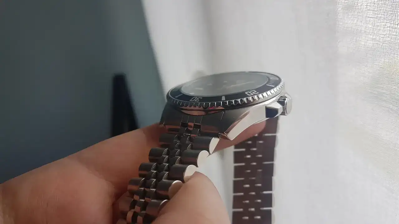 Tras un ligero paso por los alicates para ajustar, ya que al decirte que era fácil no quería hablar de más y comprobarlo. Es una jubilee de las de aliexpress, 8 euros creo que me costó, así que tampoco se espera mucho, pero para lo que costó está muy bien, eslabones sólidos y microajuste en el cierre.