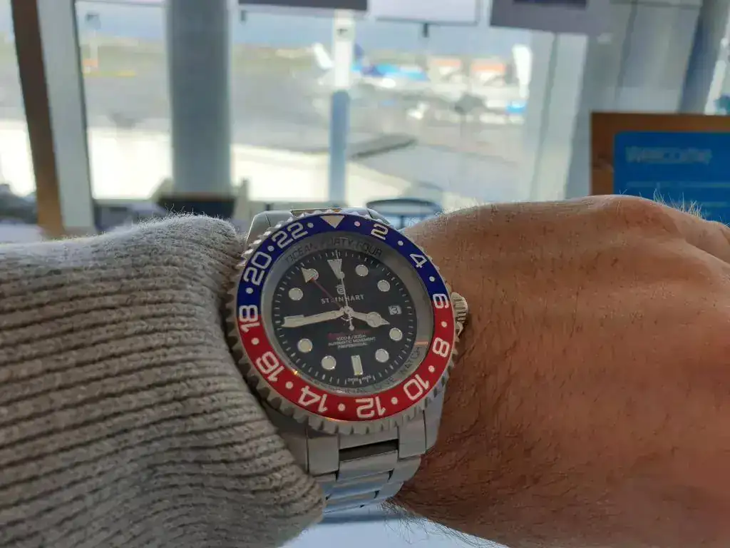 El Steinhart cuadrado dual time tipo aviador, me parece precioso, aunque las agujas no son de mi gusto. Ese se saldria de todo lo que tengo, ademas de 2 ò 3 cuarzos que muy bonitos, pero como que ni los cuento. Y aunque dije que no queria nada que se pareciera al Rolex por razones obvias, el Steinhart GMT tipo Batman es de 42 mm, y de los homages, es de los que mas me gusta. Ademas van con maquinaria ETA 2893-2 premiun elabore.