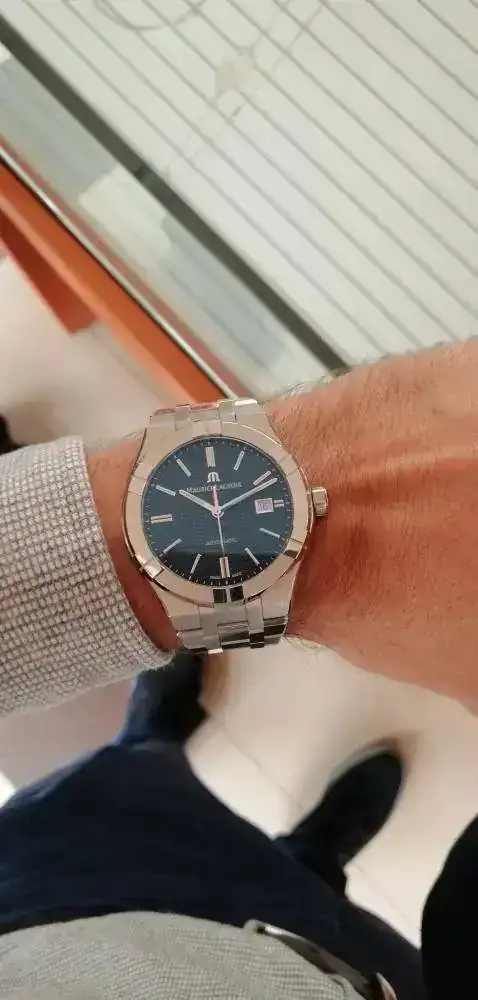 Después de una excelente visita de la cual salí más que satisfecho me fui a otro CO que sabía que son distribuidores de Maurice Lacroix. Me probé el precioso ML Aikon automatic, diría que era de 42mm. Un pelín grande, pero precioso.