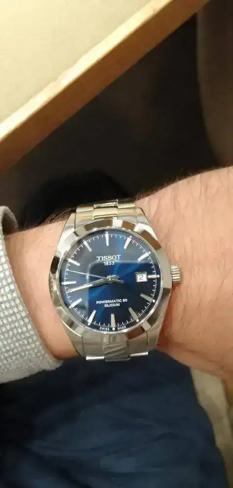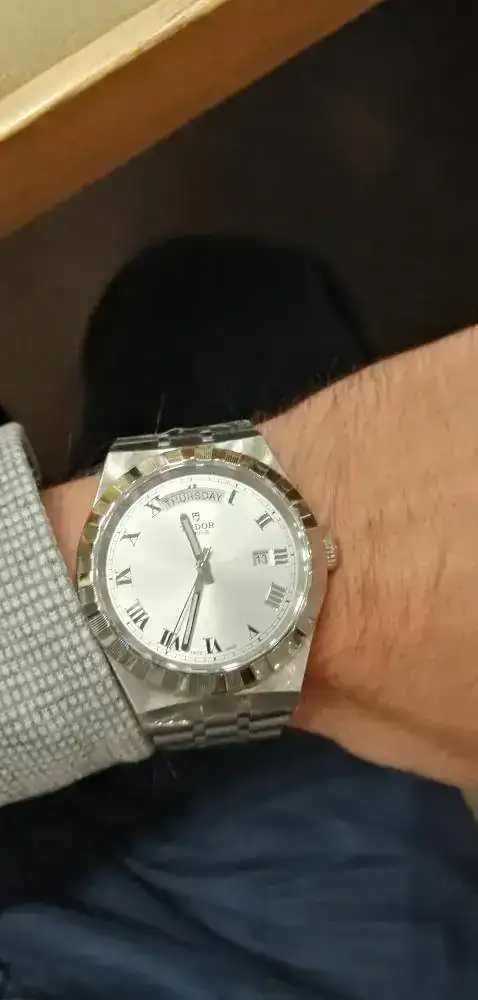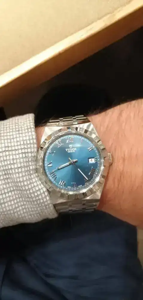 Soy novato en estos lares y ayer me atreví a entrar en la relojería de prestigio de la ciudad más cercana a mi pueblo. Iba con la idea de ver el Tissot Gentleman Powermatic 80 con escape de silicio de esfera plateada (no estaba y me probé el de esfera azul). Ya que iba también me probé los nuevos Tudor Royal 41 i 38, el primero con day-date y el segundo solo con date. El primero esfera blanca/plateada y el segundo esfera azul.