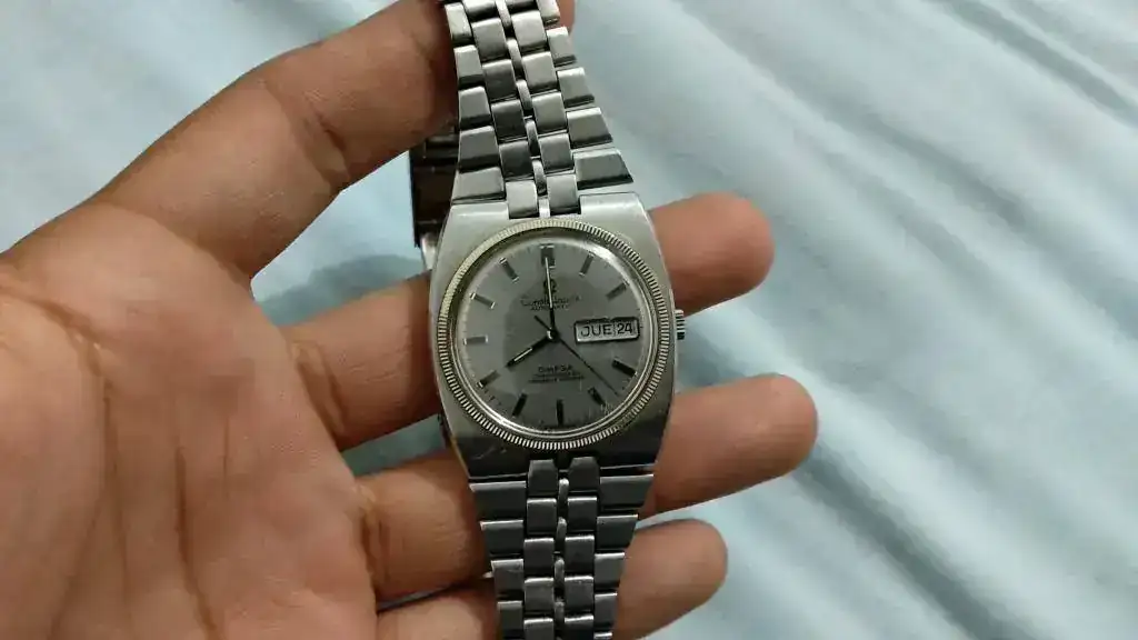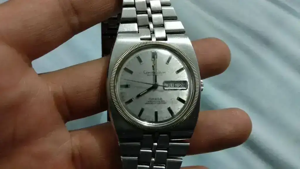 Estuve investigando y es un Omega Constellation Day-Date con calibre 751 chronometer al parecer de los 70s. Y según leí fue el primer reloj que integraba brazalete con caja, y fue presentado en Basel 1969.