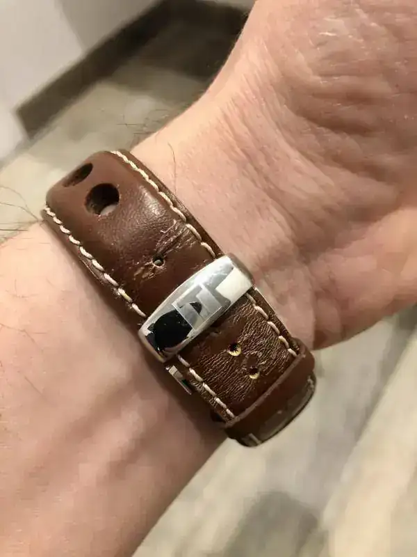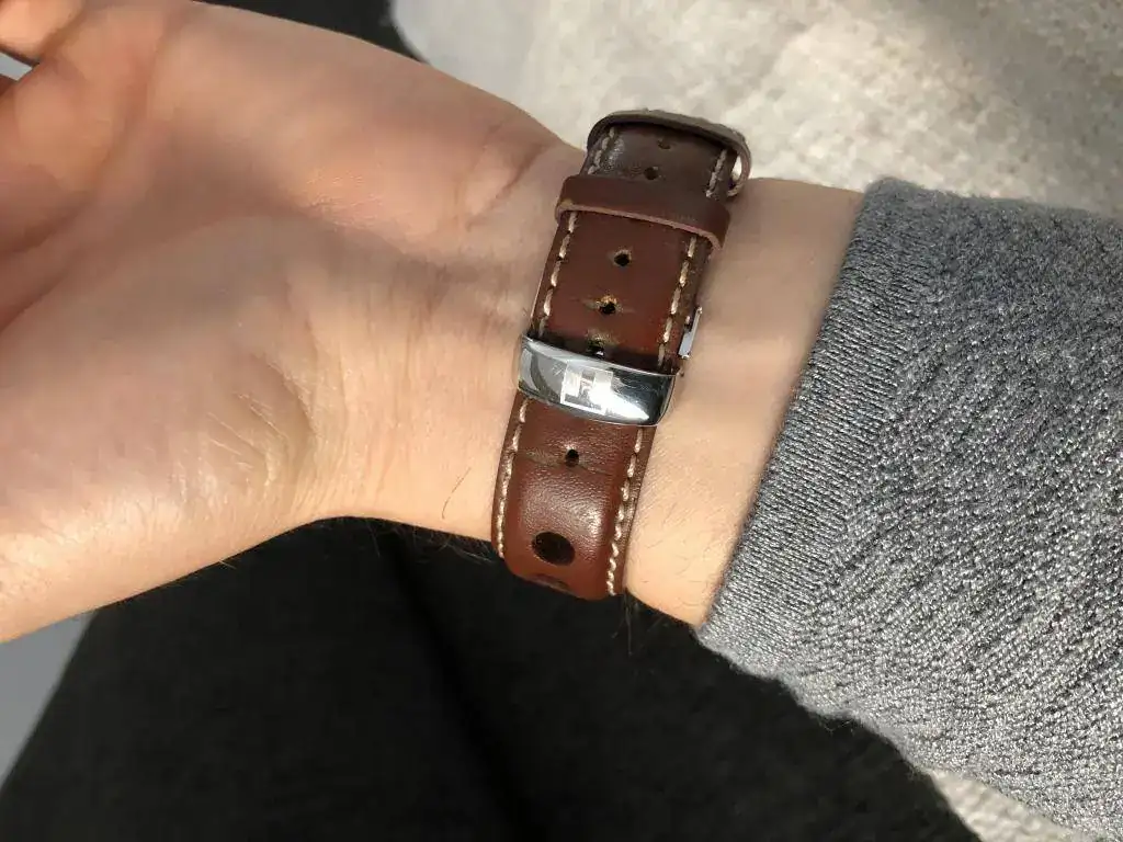 Yo he tenido esa correa del Tissot y veo que le falta material, como si se hubiera saltado la primera capa que recubre la correa.