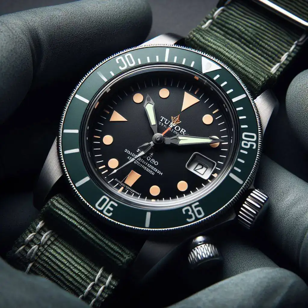 - Heuer Mónaco, con combinación de verde y beige: