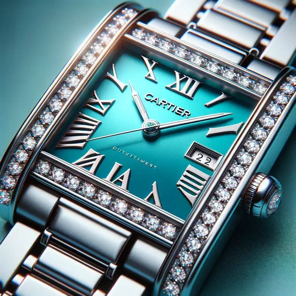 - Cartier Tank para mujer, con dial turquesa y diamantes: