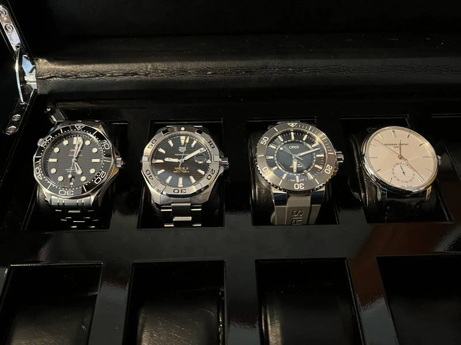 Después de vender 2 Longines, 2 Certinas, 4 Hamilton, 1 Tissot, 2 Orient, 3 Seikos..., ahora mismo tengo en la caja 4 relojes, de los cuáles alguno podría salir, aunque no es indispensable. (Hay que tener también en cuenta que estoy a la espera de un Rolex OP 41 mm, esfera azul oscura, que sabe Dios cuando lo recibiré