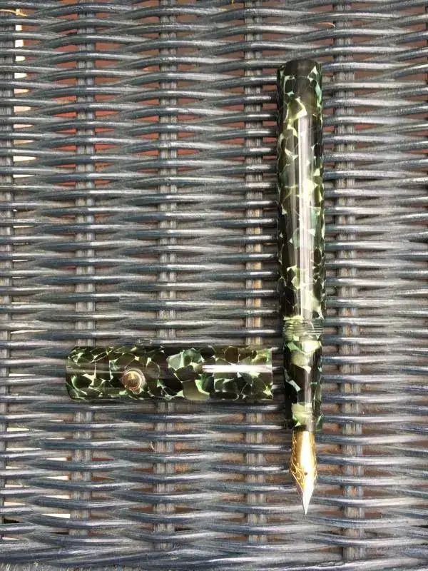 Os presento dos maravillosas estilográficas regalo de cumpleaños, a las que se unirá dentro de unos meses una Nakaya que he encargado. Como podes ver la primera es del Maestro Miguel Angel, de Antiguas Estilográficas, en resina Classic Green de Conway Stewart, lenteja de 6 m, plumón Jowo bicolor de acero #6, punto F. Sistema de carga por convertidor roscado modelo K6 de Schmidt. Cierre por rosca. Personalmente me encanta el resultado. Pero también el proceso: ir a ver a Miguel, hablar con él sin prisas sobre estilográficas y sobre cómo las crea, cómo te va poniendo al tanto de los progresos...ir finalmente a recogerla...y probarla. Escritura maravillosa. Toda una experiencia, muy grata desde luego. Pone tal cuidado en los detalles, tanto del proceso como del resultado, que es imposible dejarse de asombrar y de agradecer tal proceder.