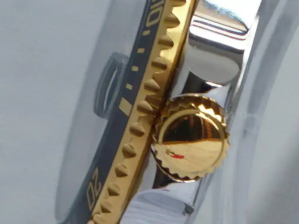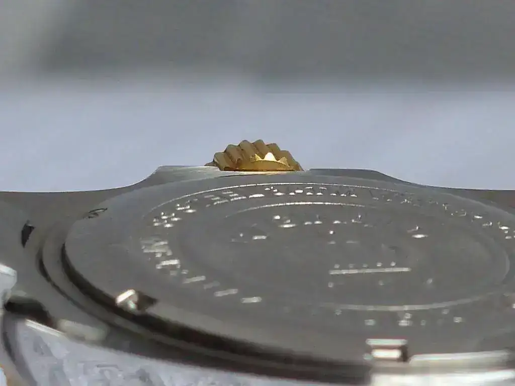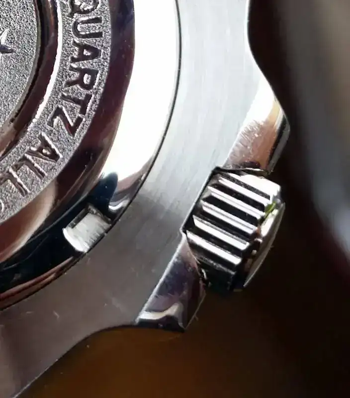 En comparación con el otro la corona sobresale de la caja lo que facilita la extracción de la corona tambien de forma accidental..me gusta mas el primero...