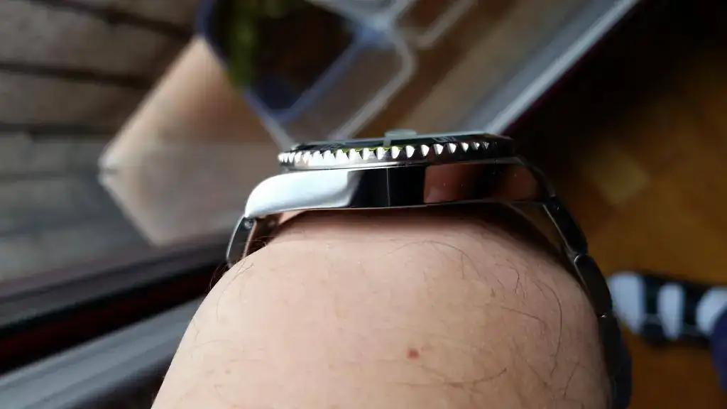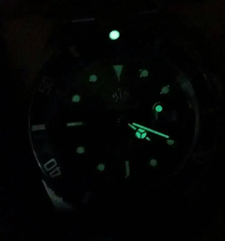 El reloj muy bonito, exacto y muy preciso este calibre de Miyota. Tapa roscada con un bonito grabado en relieve ..la esfera estupenda.. y el bisel gira igual de bien o mal como el Seiko de 200€ que tuve. Zafiro dudo que es.